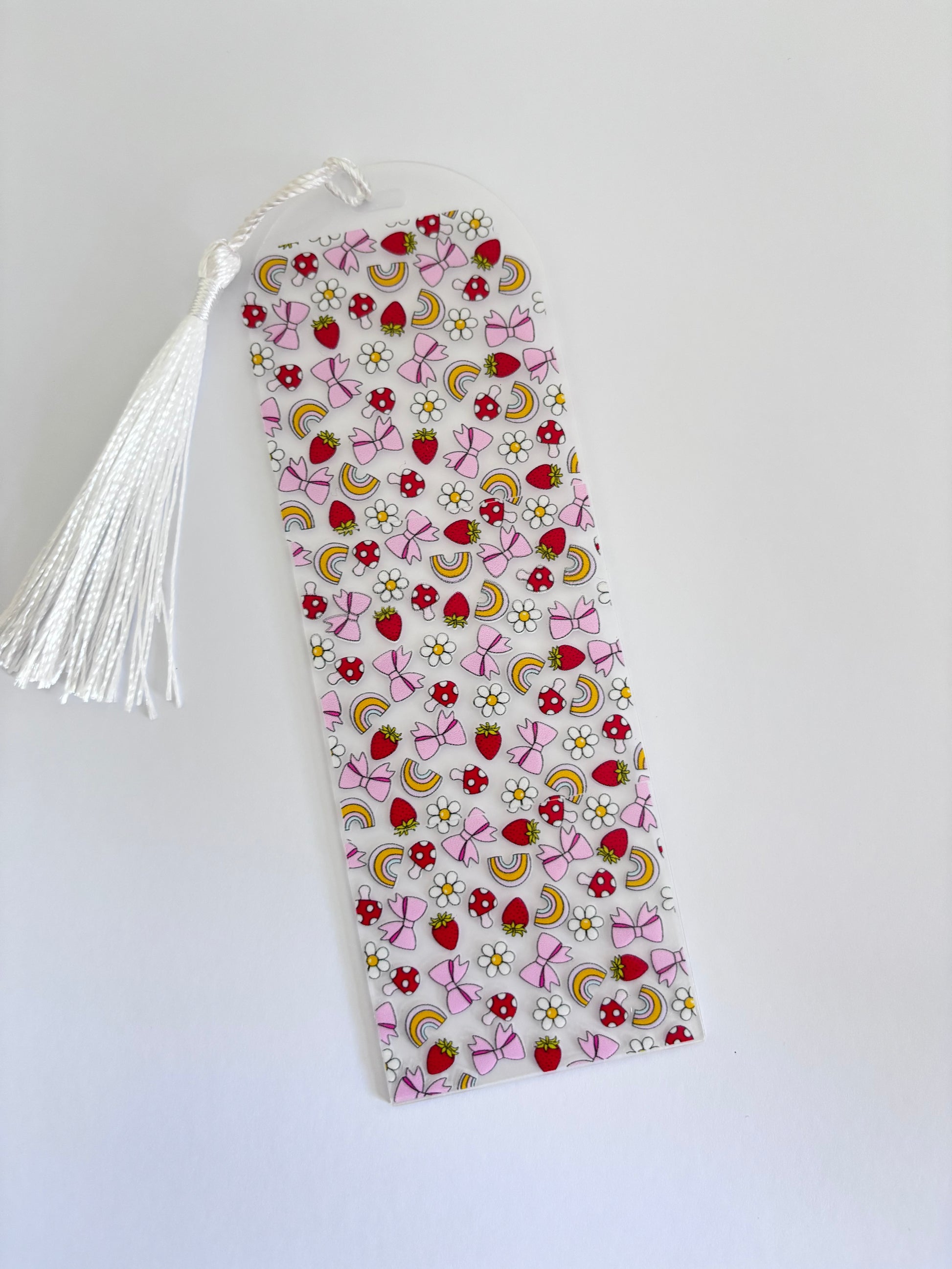Indulge in the sweet charm of the Berry Fields Acrylic Bookmark. This adorable berry design, adorned with delicate bows, is perfect for any book lover. Keep your place in style and add a touch of whimsy to your reading adventures. A must-have for any bookworm's collection.