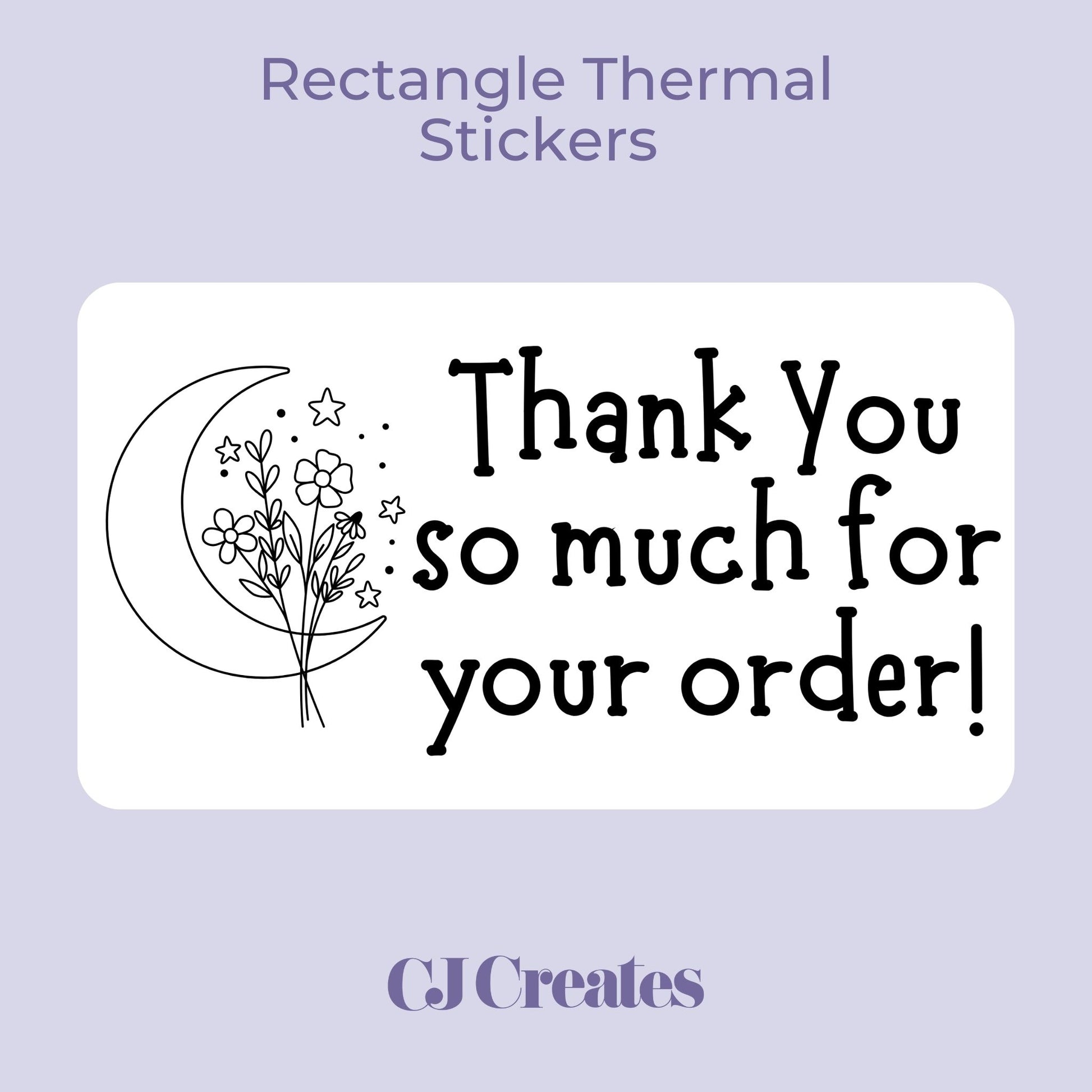 Show your appreciation with our Thank You so much (Moon) Rectangle Thermal Stickers! Featuring a cute moon and flowers, they add a personal touch to any package. Available in packs of 10, 20, 50, or 100. Say "thank you" in style and make a lasting impression!