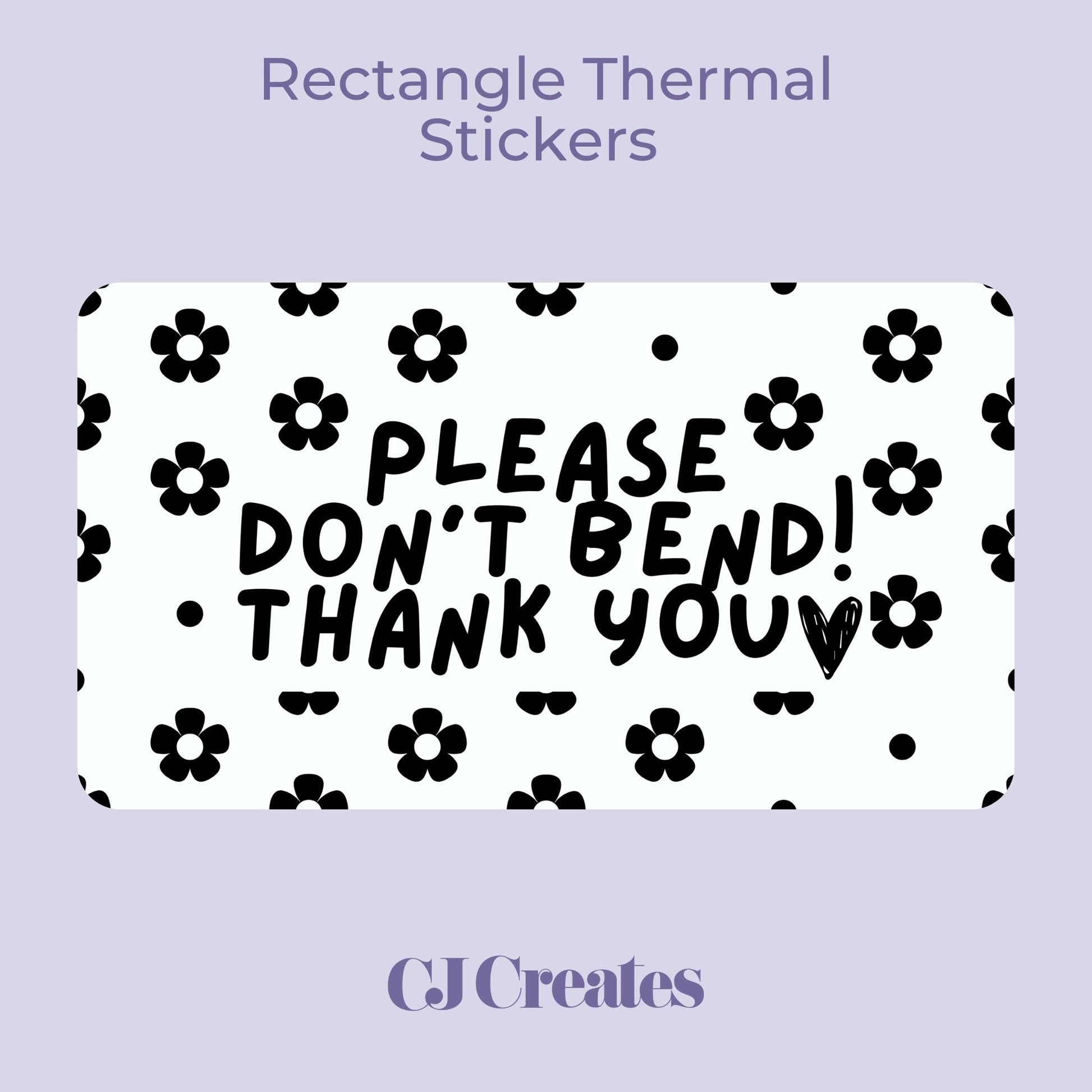 Protect your packages with our Please dont bend Rectangle Thermal Stickers! Available in packs of 10, 20, 50, or 100, these stickers come in a variety of colors and measure 1.25x2.25 inches. Keep your small business packages safe and professional.